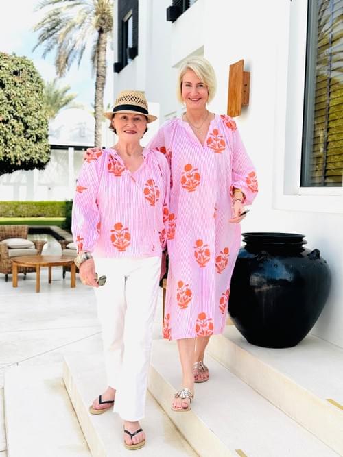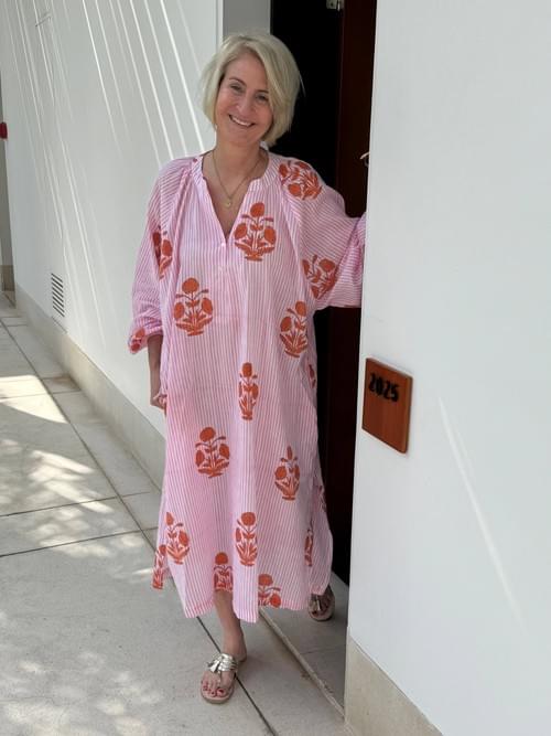 Leichtes Kaftankleid aus handbedruckter Biobaumwolle