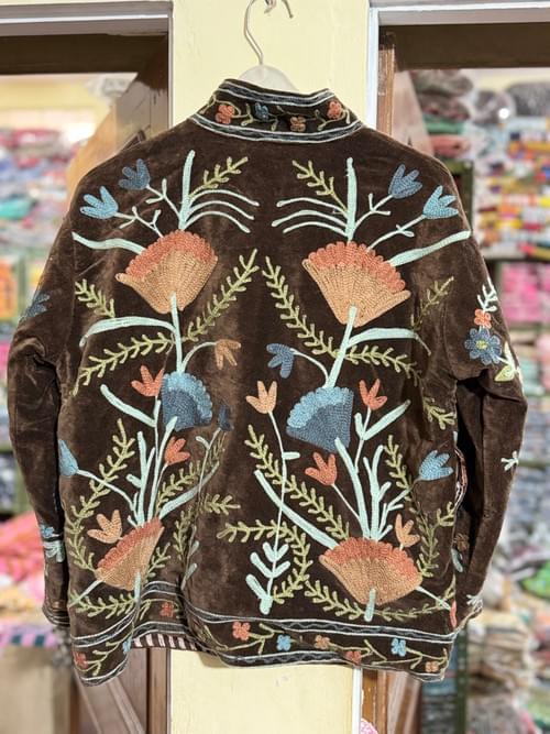 Aufwändig bestickte Jacken aus Baumwollsamt.